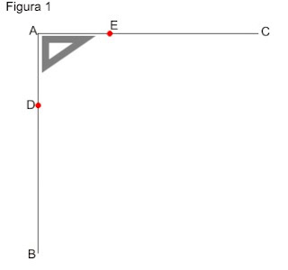 Figura 1Trace duas linhas perpendiculares entre si e marque os pontos ABCDE conforme segue: